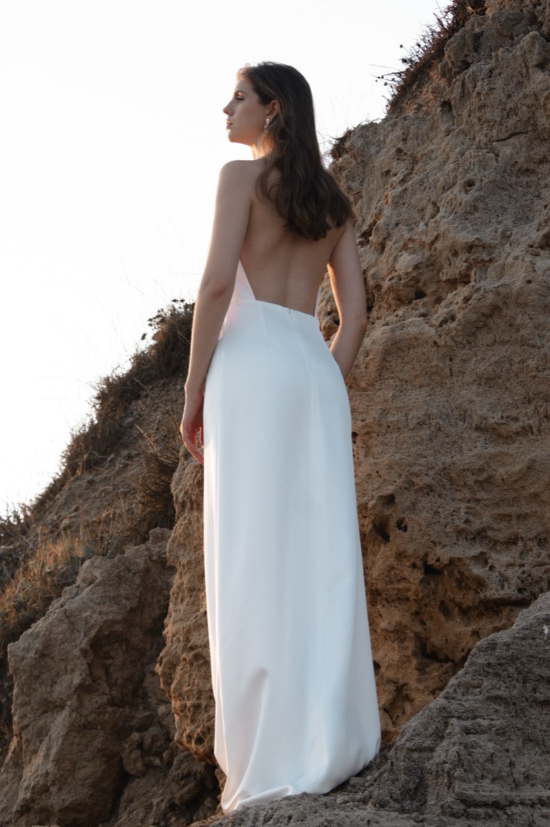 שמלה עמודה עם מחשוף עמוק בגב. חשיפה מינימלית, אפקט מקסימלי.