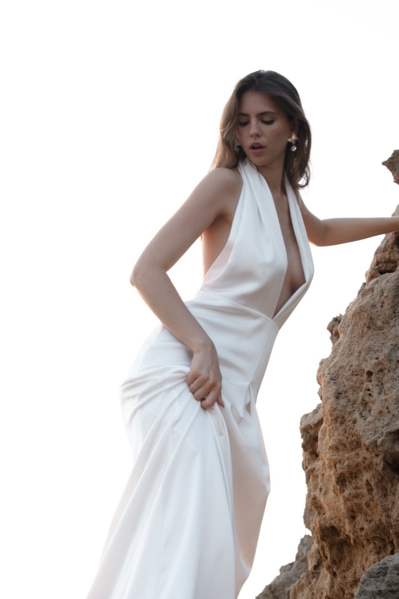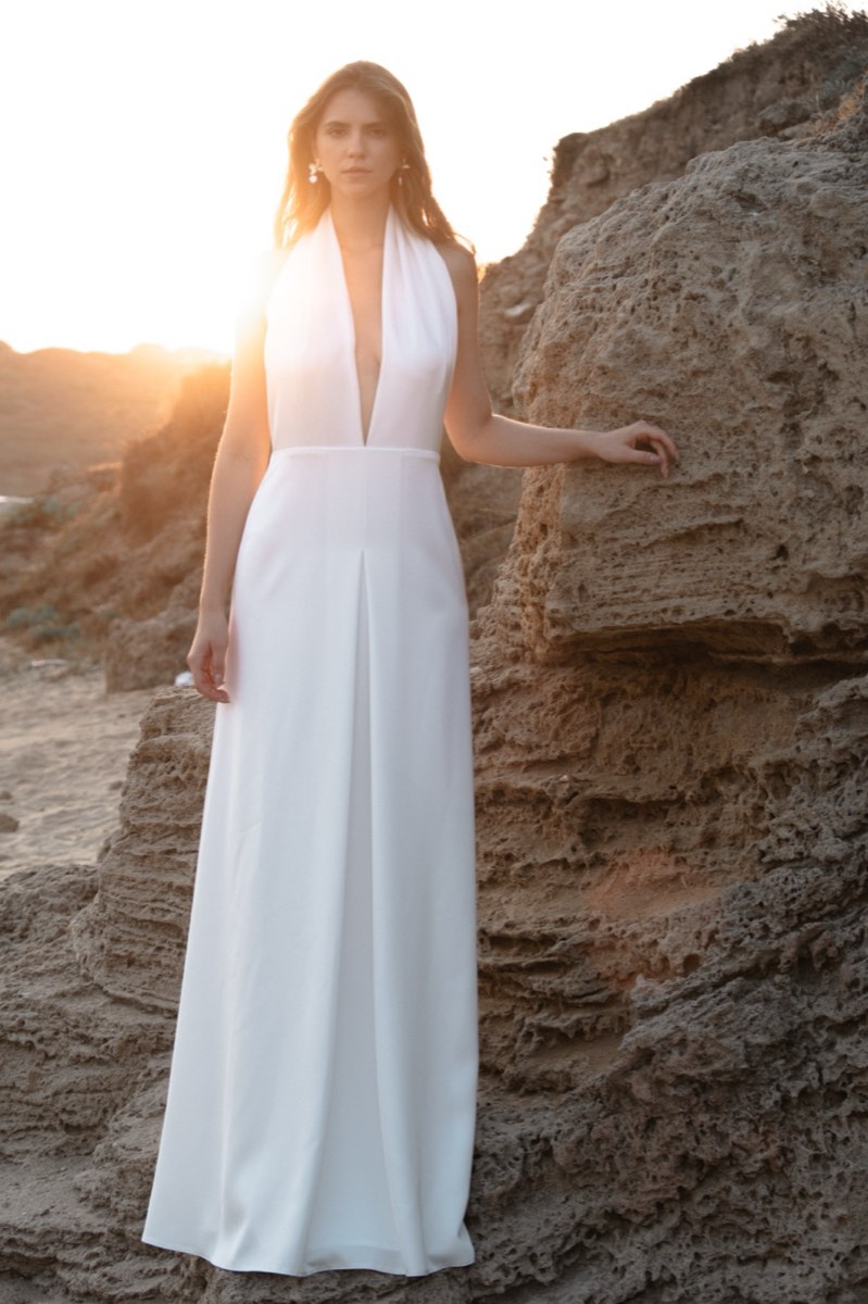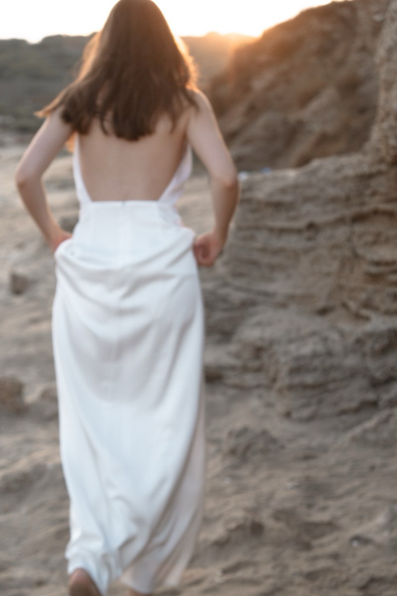 שמלה עמודה עם מחשוף עמוק בגב. חשיפה מינימלית, אפקט מקסימלי.